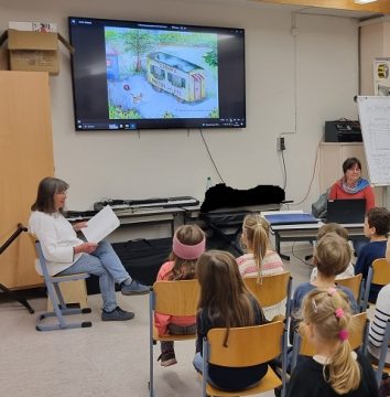 Im Rahmen der Frederickwochen fand an der Bartenbergschule am 20. und 21. Oktober eine ganz besondere Autorenlesung statt. Unsere ehemalige Kollegin, Renate Lux, und ihre Schwester, Hannelore Schreiber, kamen zu uns und präsentierten ihr Buch „Der kleine Clown“. Frau Schreiber, die Autorin, las ihre Geschichte vor, während Frau Lux ihre kunst-und liebevollen Illustrationen zum Buch am Monitor präsentierte. Vielen Dank!