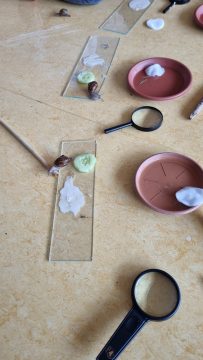 Aufgrund des Dauerregens wurde das Streuobstwiesenprojekt am 17.5.24 kurzerhand ins Klassenzimmer bzw. auf den Schulhof verlegt. Die Klassen 3 a und b stellten unter anderem Nisthilfen für Marienkäfer und Ohrenzwicker her.
