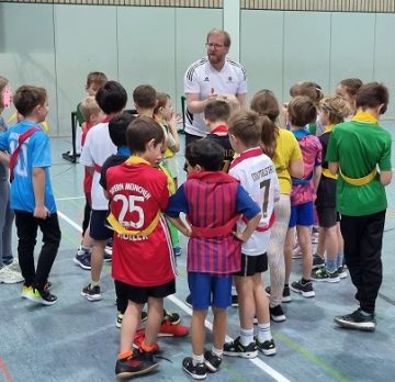 Das Programm „Score a Goal“ ist ein besonderes Fußballtraining für Grundschülerinnen und Grundschüler. Ziel des Programms ist es, Kinder frühzeitig für Bewegung zu begeistern, ihre motorischen Fähigkeiten zu fördern und gleichzeitig Teamgeist sowie Fairplay zu stärken. Am vergangenen Donnerstag waren zwei Sportlehrer bei uns zu Besuch. Im Mittelpunkt von „Score a Goal“ stand der Spaß an der Bewegung. Durch abwechslungsreiche Übungen, kleine Spiele und altersgerechte Trainingsformen lernten die Kinder spielerisch den Umgang mit dem Ball.