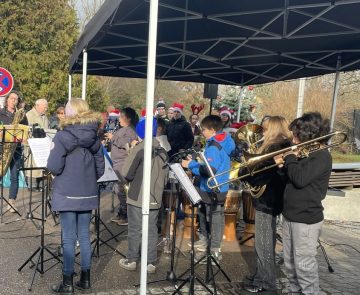 Die Bläserklasse hat den Weihnachtsmarkt mit einem Vorspiel eröffnet.